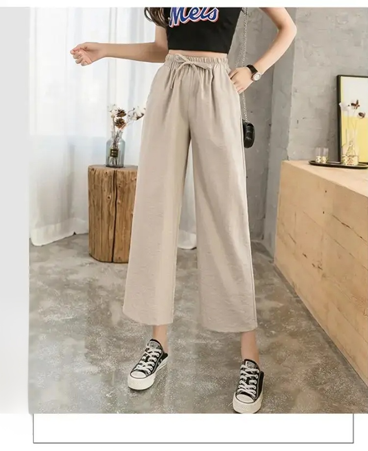 여성 하이웨스트 면마 와이드 팬츠